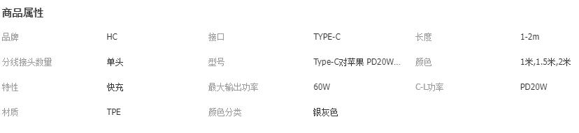 苹果PD20W快充数据线适用于华为三星TYPE-C对苹果 Typ e-C对Type-C