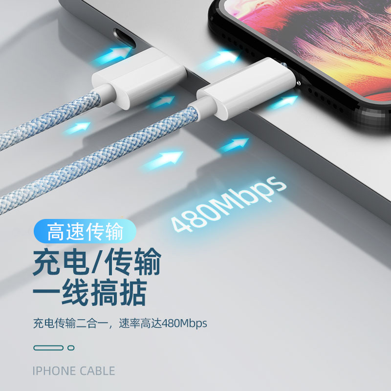适用iphone苹果8-14系列数据线type-c华为安卓快充usb 充电线2m