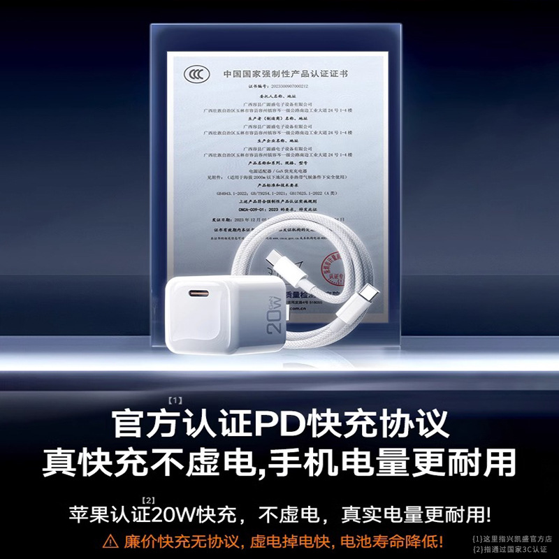 3C认证 20W氮化镓充电器适用苹果15 双typec手机数据线充电头