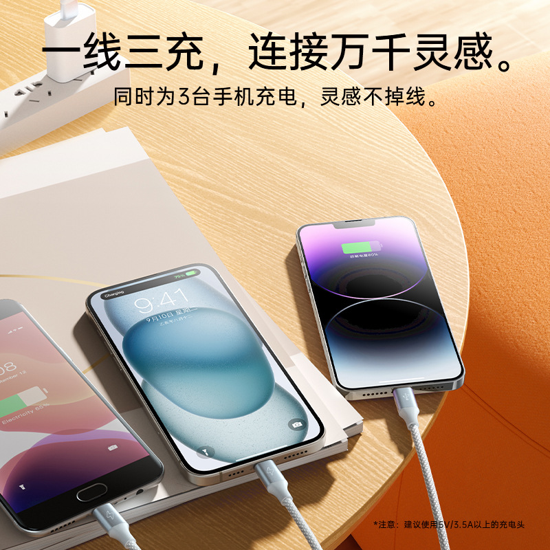 三合一数据线适用苹果13p一拖三手机安卓tpc快充充 电线